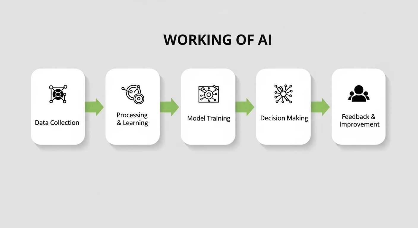 AI works by processing massive amounts of data through algorithms. An algorithm is simply a step-by-step set of instructions.