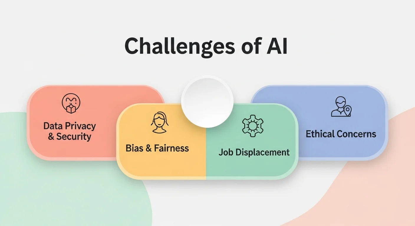 • Data Privacy: AI requires huge amounts of data to learn, which raises concerns about how our personal information is being collected and used.