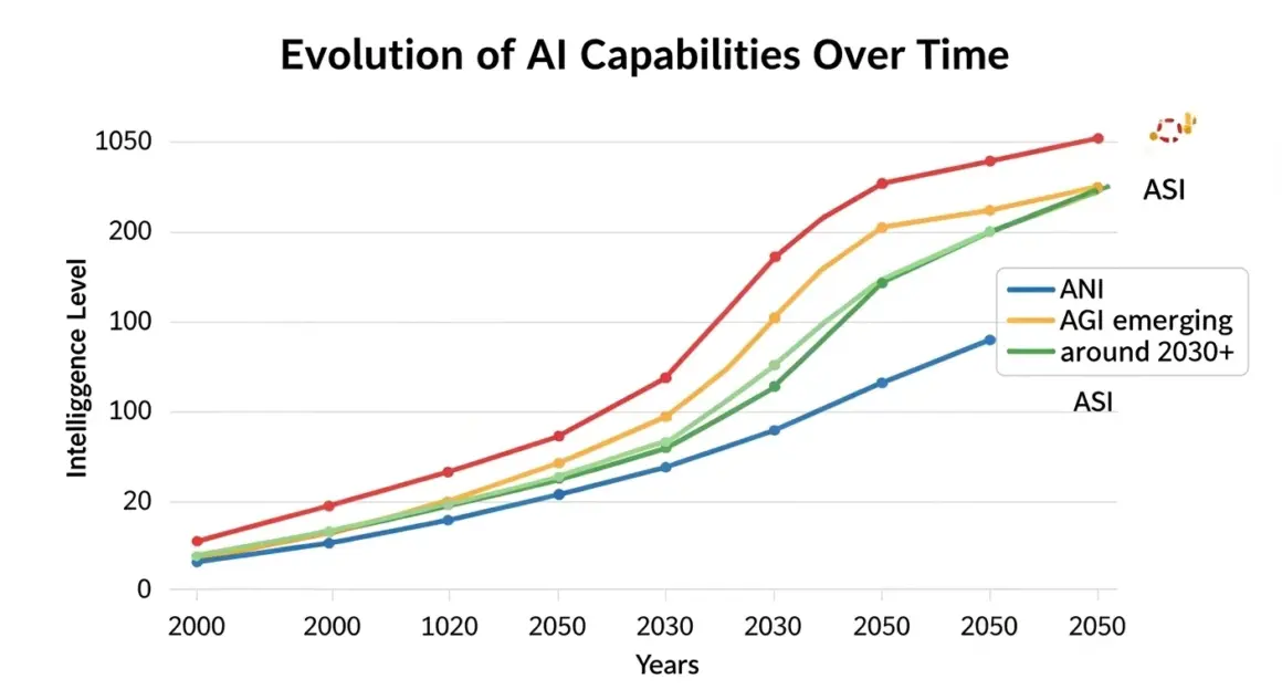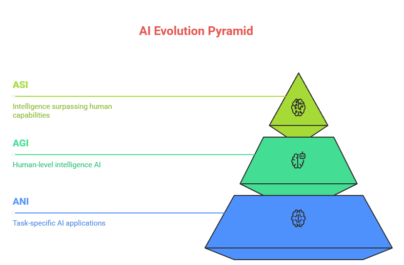 The evolution of technology usually follows a path from ANI → AGI → ASI.
